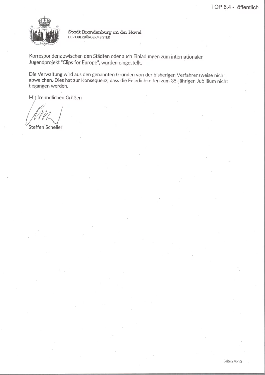 Antwort von Oberbürgermeister Steffen Scheller